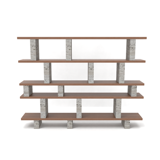 Wandregal Merpins – Rauchholz – Graue Travertinsäulen – 240 cm