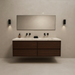 Grâce à ses 4 grands tiroirs, elle offre également un espace de rangement pratique pour tous vos articles de toilette ou serviettes. Ce meuble de salle de bain suspendu en noyer donne en plus une impression d'espace.